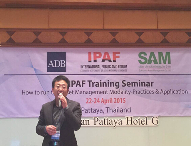 2015年4月22日-24日,浙江省浙商資產(chǎn)管理有限公司首席戰(zhàn)略官李傳全博士等3人應(yīng)邀參加了在泰國芭提雅舉行的第三屆IPAF(International Public AMC Forum,國際公共資產(chǎn)管理公司論壇)培訓(xùn)研討會,與亞太地區(qū)的十多家資產(chǎn)管理公司、專家學(xué)者等就不良資產(chǎn)收購處置等專題進行面對面交流。