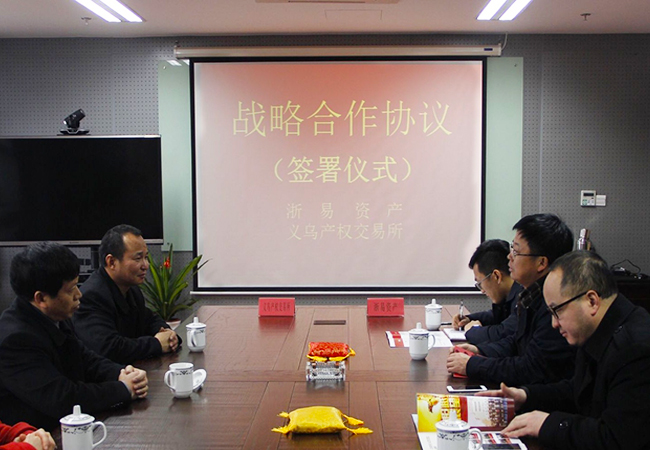 2016年2月4日,浙易資產與義烏市產權交易所簽訂戰(zhàn)略合作協議,浙易資產董事長朱巧偉、總經理曹晨及義烏產交所總經理趙秋明、副總經理陳喜忠出席。