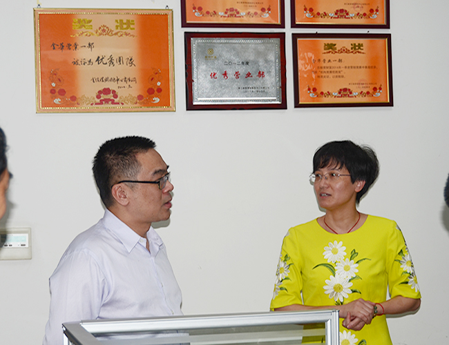 2016年6月2日下午,浙江國(guó)貿(mào)集團(tuán)副總裁、浙商資產(chǎn)董事長(zhǎng)藍(lán)翔一行抵達(dá)金華,對(duì)下屬金信資產(chǎn)、般若理財(cái)金華營(yíng)業(yè)部、奧托康制藥公司等進(jìn)行視察指導(dǎo)工作。
