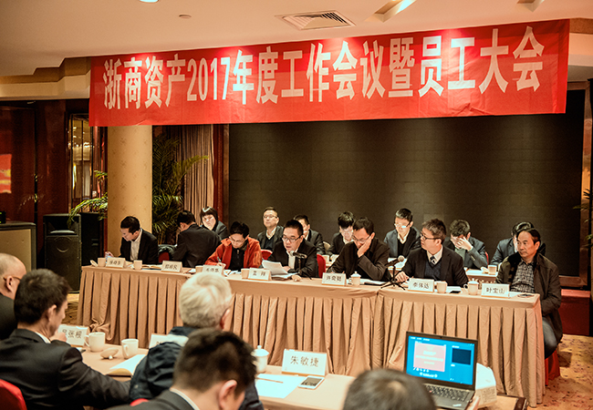 會議首先由公司董事長藍翔發(fā)表題為《強化管理、提速發(fā)展、雙輪驅動,推動浙商資產(chǎn)業(yè)務發(fā)展再上新臺階》的講話,對浙商資產(chǎn)及各成員公司2016年的重點工作做了總結,并對2017年的工作進行了部署和展望。藍董表示2016年浙商資產(chǎn)在省委省政府、國貿(mào)集團以及相關部門的關心支持和領導下,面對原有利潤渠道受限、外部競爭加劇等諸多挑戰(zhàn),公司上下頂住壓力,積極調整,搶抓機遇,以及“整固、優(yōu)化、提升”的指導原則,全體員工團結奮進、齊心協(xié)力,以風險防控、提升管理、調整業(yè)務結構、生態(tài)圈建設、增收入控成本等一系列方式為抓手,圓滿完成了各項任務。2017年將是機遇與挑戰(zhàn)并存的一年,是浙商資產(chǎn)的“管理提升年”,公司將“強化管理、提速發(fā)展、雙輪驅動"為指導原則,以上市公司運營規(guī)范和金融資產(chǎn)公司管理規(guī)范為標準,從業(yè)務單一化向業(yè)務多元化轉變,實現(xiàn)浙商資產(chǎn)再上新臺階。