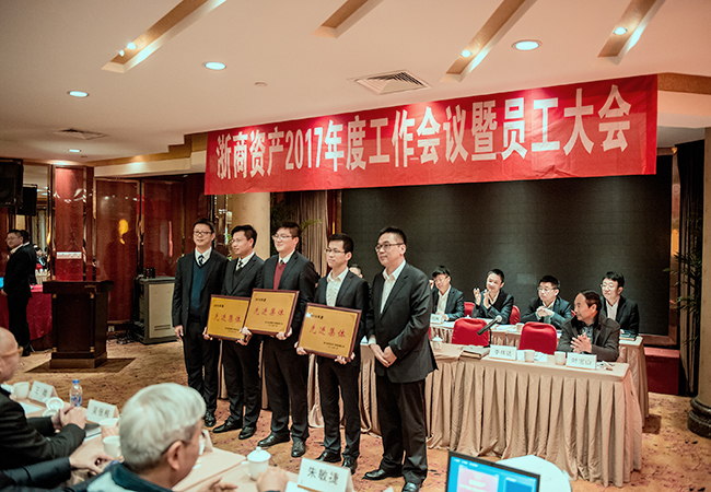 2016年1月19日上午,浙商資產(chǎn)于杭州友好飯店召開2017年度工作會議暨員工大會,會議由公司總經(jīng)理李偉達主持。省金融辦金融穩(wěn)定處許奇挺處長,財專辦毛海華副處長、王晗科長,公司本級全體員工及浙蕭資產(chǎn)、浙易資產(chǎn)、般若理財、金信資產(chǎn)、臺信資產(chǎn)等成員公司員工到會參加。