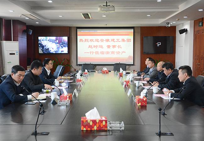 2017年2月15日,安徽建工集團趙時運董事長一行來訪浙商資產(chǎn)。公司總經(jīng)理李偉達對趙董一行的來訪表示熱烈歡迎,并介紹了浙商資產(chǎn)的成立條件、業(yè)務開展情況、配套體系建設等方面的信息;趙董介紹了安徽建工集團以及下屬資產(chǎn)管理公司的基本情況。隨后雙方就尋求合作點、加強業(yè)務合作等方面內容進行了深入的討論和研究。