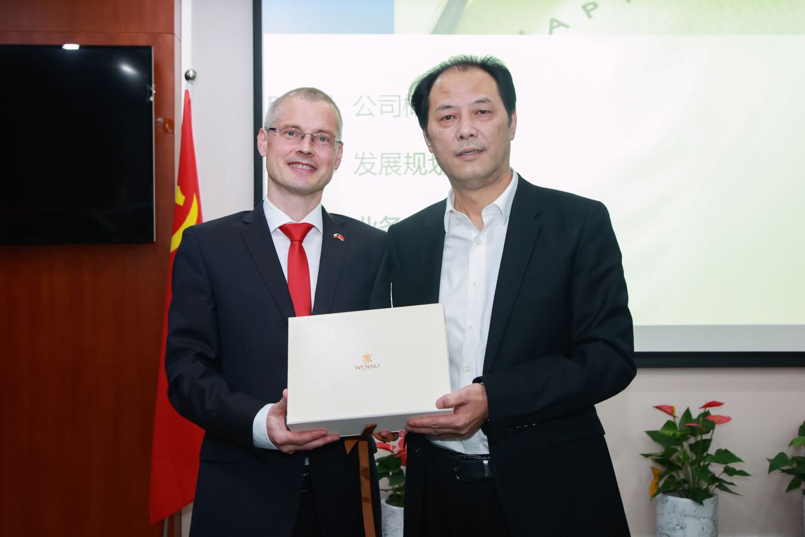 孫建華董事長首先對佟福德大使一行的來訪表示熱烈歡迎,并介紹了國貿(mào)集團和浙商資產(chǎn)的發(fā)展情況。他指出,國貿(mào)集團與捷克企業(yè)的貿(mào)易合作由來已久,未來進一步合作的空間廣泛。省政府對于浙商資產(chǎn)與捷信消金的合作高度重視,浙商資產(chǎn)將根據(jù)監(jiān)管要求,在依法、合規(guī)、專業(yè)且符合商業(yè)邏輯的原則下,全力以赴推進與捷信消金的合作。
